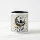 Celebrate Eid in style with our premium design featuring a black mosque silhouette nestled within a golden crescent moon. Surrounded by shimmering gold stars and elegant cosmic elements on a soft beige background, this sophisticated Eid Mubarak coffee mug beautifully captures the magic of the holiday. The modern calligraphy and luxurious gold accents make this the perfect festive attire for this blessed Islamic celebration.