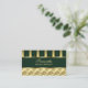 An intricate unique business card consisting of geometrically different borders, that is, one in emerald green and gold stripes, the other in gold. Edit the name at the front and back, and the job title and address all at the back of the card. To do this select '' personalize this template''.
