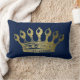 Luxurious esoteric gold crown navy lumbar pillow.