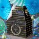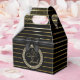 An elegant ending touch for gifts with thankful action on any occasion such as this luxurious box with crystals and ornamental ribbons and golden stripes with elegant black background.