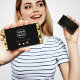 YOUR FAVORITE - Make a lasting impression with this elegant and luxurious business card design featuring shimmery gold borders on a plain black background with sparkling diamonds and bright stars.