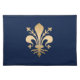 Luxurious gold Fleur de Lis navy cloth placemat.
