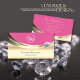 Luxurious and elegant business card design featuring light gold colors decoration with a glamorous sparkling diamond and pink background.
