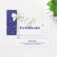 Luxury and rich holiday design featuring splendid Christmas gift bow and golden snowflakes pattern on a blue background. This festive gift certificate is perfect for your small business or to gift friends and family.