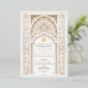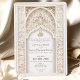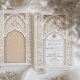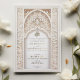 Invite your guests to a truly elegant wedding with this luxurious Islamic-inspired wedding invitation. Featuring intricate floral and geometric patterns, this invitation is adorned with opulent gold foil accents that highlight the detailed design. The front showcases an elaborate archway motif in shades of ivory, beige, and soft gold, creating a sophisticated and timeless look. The back continues the theme with a seamless floral design and a monogram, making it perfect for a refined and memorable wedding. Ideal for couples who appreciate the beauty of Islamic art and architecture, this invitation sets the tone for a grand celebration.