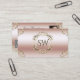 The design features glamorous, ornate golden decorative elements in the center and corners, on a bright shimmering rose gold background.