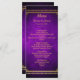 Each menu item is elegantly presented, with gold foil accents and ornate typography, reflecting the grandeur of the theme. From the sparkling welcome drink to the decadent desserts, every detail is crafted to perfection, mirroring the richness of the royal purple and gold palette. This menu is not just a guide to the culinary experience but a beautiful keepsake that complements the vintage luxury of your special day.
