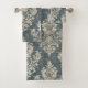 Luxurious Silver Damask on Blue Background Bath Towel Set
