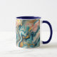 This mug features luxurious swirls of blue with delicate golden accents. The abstract design, enhanced by a marble-like texture, adds a touch of sophistication. Ideal for art lovers, professionals, and elegance seekers, it makes a stylish addition to any home or office.