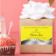 The design features a noble shimmery wavy silver decoration with soft glitter stars and a yellow background.