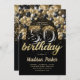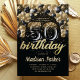 Luxury 50th Birthday Black Gold Balloon Glitter Invitation