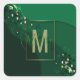 Luxury Abstract Emerald Green Gold Monogrammed Square Sticker