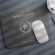 Barber shop mouse pad with faux silver metallic scissors logo and barber script on a dark grey leather look background