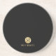 featuring black monogram in gold circle element with name in gold professional font style on black background.
