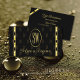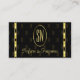YOUR FAVORITE - Make a lasting impression with this elegant and luxury business card design featuring shimmery golden decor borders and oval frame. On the front matching monogram pattern on a black background.