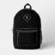 Beautiful and glamorous backpack design featuring a luxury black background with an organic pattern of silver sparkles.