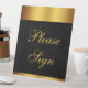This luxury wedding pedestal sign features a faux gold script calligraphy that reads "Please Sign". Place it near your guestbook. Congrats on your wedding! Designed by Susan Coffey.