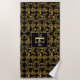 Luxury Black & Gold Damask Botanical Personalized Beach Towel
