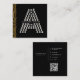 Luxury Black Gold Diamond Initial Monogram QR Code Square Business Card