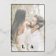 Exude modern sophistication with this captivating design, showcasing elegant white and genuine gold foil calligraphy on a sleek black background. Enhanced by a delicate gold foliage element, this invitation radiates chic refinement and timeless style. The reverse offers space for a personalized touch with your favorite couple's photo and monogram. Fully customizable with your details, it’s the perfect choice for adding a touch of elegance and individuality to your special day.