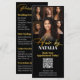 This elegant black and gold hair salon price list is perfect for showcasing your services and pricing. The design features a modern and stylish layout with high-quality images, making it visually appealing to potential clients. Easily update your contact information, including your phone number, email, website, and even a QR code for easy booking! The clear and concise pricing structure for braiding, hair styling, color, and extensions ensures that clients can quickly understand your offerings. Make a statement with this professional and attractive menu.