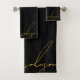 Luxury Black Gold Signature Script Monogram Bath Towel Set