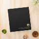 This luxurious black leather 3-ring binder is perfect for estate planners, financial planners, and attorneys. The design features two overlapping monogram initials in classic block typography on a brushed metallic gold emblem with your company name and area of specialty below in the lower thirds, right-hand corner. Keep your important client documents organized and secure in style with this sophisticated binder.