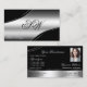 Luxury Black Silver Curved Lines Monogram Photo Business Card
