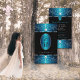 Make a lasting impression with this luxurious and elegant business card design featuring fine filigree ornate ornaments with diamonds and sparkling stars. The borders are shimmery teal and blue with silver decor on a black background.