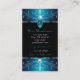 Make a lasting impression with this luxurious and elegant business card design featuring fine filigree ornate ornaments with diamonds and sparkling stars. The borders are shimmery teal and blue with silver decor on a black background.