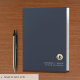 Add a touch of sophistication to your office supplies with this personalized pocket folder featuring a brushed metallic gold emblem with two overlapping monogram initials in classic block typography. The navy blue background provides a perfect contrast to the elegant design, while the company name and estate planning information in golden classic typography add a professional touch. This folder is perfect for attorneys, estate planners, and similar professionals.