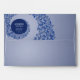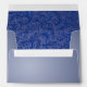 This design features a deep blue background adorned with intricate silver damask patterns that shimmer with elegance. The ornate floral swirls create a sophisticated circular frame in the center, where the customizable name and address appear. The striking contrast of cool blue and metallic silver gives this envelope a refined, royal touch—perfect for weddings, anniversaries, formal invitations, or milestone celebrations. All text areas are editable for full personalization.