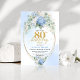 Luxury Blue Floral Eucalyptus 80th Birthday Invite