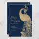 This gorgeous glam wedding invitation design features luxury navy blue and gold royal peacock bird elegant Wedding Save the Dates invitations that are perfect for any classy and sophisticated ceremony. This exquisite geometric design is ideal for the trendy and stylish couple. Customize this design with your message and personalized information. All designs are printed.