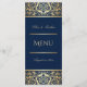 Add this Luxury Blue, Wedding Dining Menu Card to your Reception Accessories. Designed to compliment our Luxury Blue Wedding Stationery Collection, this Navy Blue card is decorated gold colored borders and accents for a luxury look. To personalize, simply insert your text: including the Bride and Groom's Names and Wedding Date (front), and your Appetizer, Entre and Dessert Selections (reverse), using our easy template (and replacing the sample text).