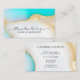 The front side showcases your name and profession in an elegant script font, set against a rich backdrop of flowing aqua and soft white marble, delicately streaked with metallic gold accents. The high-end design reflects both your creativity and your commitment to premium beauty services.