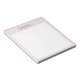 This elegant notepad features a blush pink background with delicate rose line art drawn in a minimalist thin style. The design includes a personalized name placed beside the flower along with an optional custom text line such as bridesmaid, bride, or another special title. The soft pink tone and simple floral detail create a clean and stylish stationery piece perfect for notes, lists, and daily planning. Personalization makes it a thoughtful gift for bridesmaids, friends, or anyone who enjoys beautiful personalized stationery.