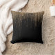 Luxury Chic Black Gold Sparkly Glitter Fringe Throw Pillow