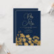 Luxury classy navy blue gold wildflower Wedding Invitation