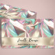 An elegant business card with a faux crumpled holographic background featuring space for your name, profession, social media handle, website, mailing address and phone number.