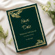 Elegant modern dark green and golden leaf frame Save the Dates invitation. This luxury minimalist wedding invitation is perfect for any classy and sophisticated glam girl. This design is ideal for a trendy and stylish party event. Design with your own message and information. All designs are printed.