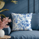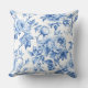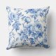 Luxury Deep Blue Toile de Jouy Rose Pattern Pillow