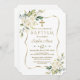 Luxury Delicate White Flowers Gold Cross Baptism Invitation