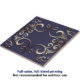 This ceramic tile that exudes an air of elegance and sophistication. The base color of the tile is a deep blue, providing a rich backdrop for the intricate designs embossed on it. These designs, rendered in luxurious gold tones, consist of graceful curves and swirls that form a symmetrical pattern. Four prominent curved elements extend from the center towards each corner, surrounded by smaller detailed embellishments that add complexity and depth to the design. The varying shades of the golden embossed elements create a 3D appearance, giving the tile a sense of depth. This tile is not just functional, but a work of art that can elevate the aesthetic appeal of any space it graces.