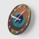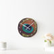 Luxury elegant peacock feather eye photo custom wall clock. Very chic peafowl eye design with stylish script typography template. Luxury gift ideas for him and her. Add your own company name, name, monogram or slogan. Great for classy spa, beauty salon, beautician, kitchen, bedroom, new house, wedding venue etc. Luxurious accessories and decoration for home or office.