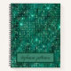 Luxury Emerald Shimmering Sequins Custom Name Notebook
