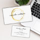 Make a bold statement with this luxury faux gold circle white business card, designed for a modern and professional look. The elegant script typography combined with a minimalist and classy design makes it perfect for corporate employees, makeup artists, beauty salons, and hair stylists. The chic and trendy aesthetic ensures a stylish and polished presentation, leaving a lasting impression on clients. Whether you're looking to enhance your business branding or elevate your professional image, this sleek card is the ideal choice.
