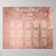 elegant, modern and simple faux rose gold leaf table seating chart. stylish, luxurious and chic faux foil rose gold leaf background table seating chart.