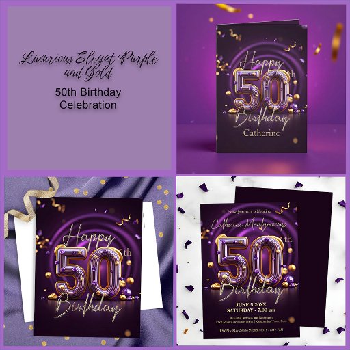 Luxurious Elegant Purple and Gold 50th BirthdayDesigned by Kristina Lj Petrovska