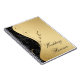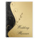 Luxury wedding planner notebook in gold and black with floral swirls. Text is fully customizable.